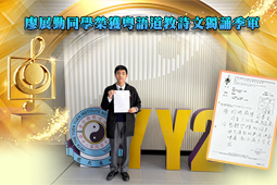 廖展勤同學榮獲粵語道教詩文獨誦季軍