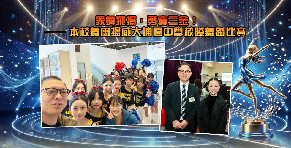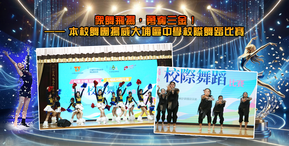 本校早前參加由大埔區文藝協進會主辦之「第44屆校際舞蹈比賽」,三組皆成功獲得三位評判青睞,同時勇奪金獎,成績亮麗。
