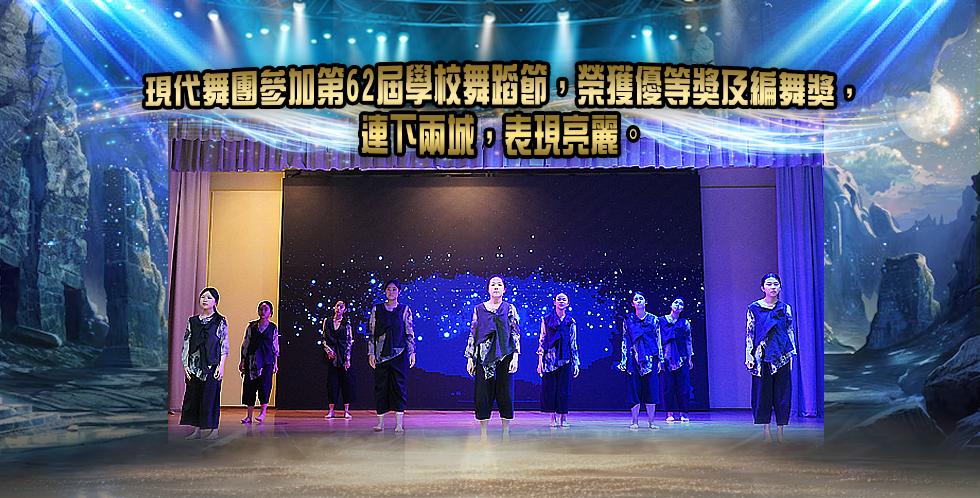 現代舞團早前參加由香港學界舞蹈協會有限公司主辦之「第62屆學校舞蹈節」,憑「疲勞候群症2.0」一舞榮獲最高級別的「優等獎」,編舞者陳嘉靜老師亦獲評判青睞,收穫「編舞獎」,成績可人。